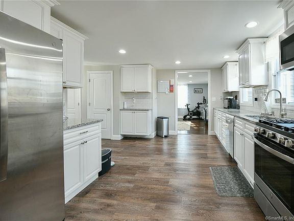 Completely renovated Newington home across from Indian Hill Country Club golf course. Stunning home-move in ready! Enjoy golf course views from the front porch, or sit in the privacy of your back porch! Beautiful white kitchen complete with new stainless appliances, granite counters, and recessed lighting. Large family room with room for a work area, enclosed front porch, formal dining area, tons of kitchen storage, coat closets, and a half bath all on the spacious main level. Walk upstairs to 3 large bedrooms, including a master bedroom with 2 closets and a full bath. There is another full bath and a laundry closet to complete the upper level. Refinished hardwood floors throughout. New gas furnace, tankless hot water heater, central air, paved driveway located on Wilson, new windows, vinyl siding, and a back porch, detached one-car garage, and basement storage. This home is a must see!