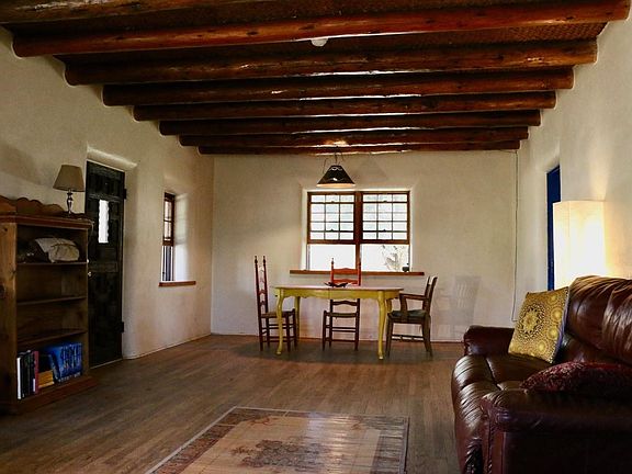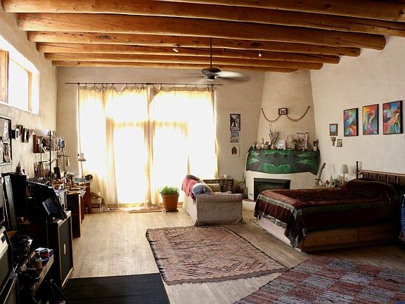 This historic home (formerly the Canon post office) is well maintained with a flowing main house with spacious rooms, full kitchen with all appliances, a lovely back yard for gardening and outdoor enjoyment. The garage is attached to a studio with three full spacious rooms. Well located just minutes from Taos Plaza. The master bedroom features a fabulous bath with both shower and tub, plus a gas fireplace and french doors leading out to the backyard.