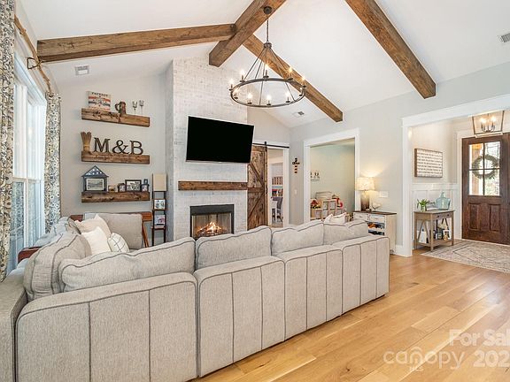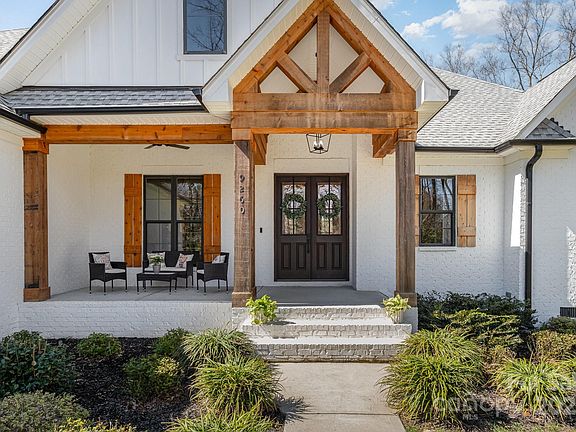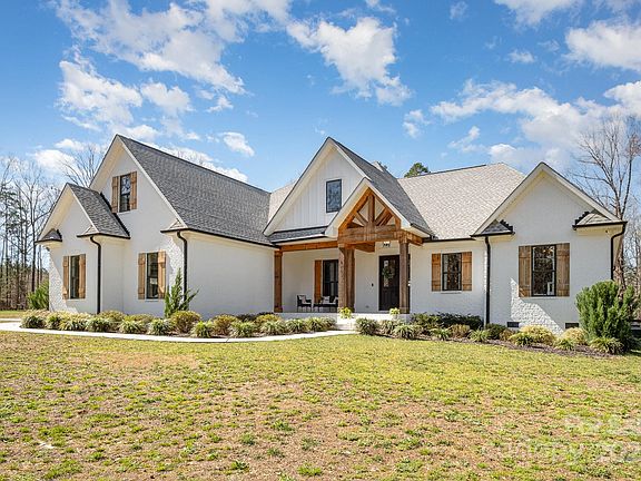 This custom-built home, set on 10 wooded acres in Indian Trail, offers unmatched privacy and luxury. The full brick exterior and tranquil surroundings create a serene retreat. Inside, the open floor plan includes a spacious living room with wood beams and a fireplace. The chef’s kitchen features quartz countertops, a gas range, a walk-in pantry, and a wet bar. The main-floor primary bedroom offers an en suite bath with a walk-in shower, soaking tub, and a large walk-in closet. Additional bedrooms, bathrooms, and a flexible space are located on the main floor. Upstairs, you'll find a bonus room, a full bath, and a bedroom. The three-car garage with a full bath provides easy access to the outdoor oasis, including a heated saltwater pool, built-in spa, and fire pit. Enjoy a walk on the perimeter trail or relax in the screened porch, overlooking the pool.
