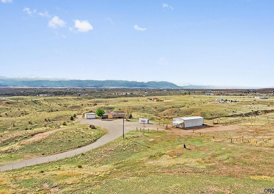 VIEWS VIEWS and more VIEWS! As far as the eye can see! This 3 bedroom and 2 bathroom home sits on 12 acres of pristine Coloradan rolling hills with mountain views in the horizon. New flooring, gas fireplace, and stainless-steel appliances are but one of the many wonderful features this property has to offer. Property has 2 front wood deck porches with pergolas for shading. Front entry has a storm door as you walk into the spacious mud room with built-in bench with storage and a coat closet. The living room has vaulted ceilings, lots of large picture windows to enjoy the vast views, and woo fireplace. New vinyl plank flooring throughout the property. The kitchen features stainless-steel appliances, concrete countertops, spacious pantry closet, and a large eat-in dining area with lots of windows. Bedrooms 2 and 3 both have walk-in closets and vaulted ceilings. Master bedroom has a huge walk-in closet, bath ensuite with dual sink vanity. French doors from the master bedroom lead you into a non-conforming 4th bedroom or seating area off the master with windows and spacious closet. There's an additional non-conforming office as well with lots of windows, concrete floors, w/ a walkout.
