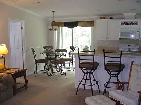 Charming Bungalow! 2010 Palm Harbor, 2 bedroom 2 bath split floorplan. What a charming bungalow with cathedral ceilings in the main living space looking out to the lanai and beyond to the conservation area. Imagine yourself relaxing in this neutral color scheme in such a beautiful setting. Each bedroom has its own bath; ideal for guests. The golf cart is included which makes this home an even more perfect find!