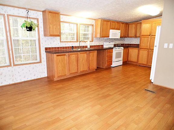 Are you looking for a place to stretch out? This spacious manufactured home sits on just under 3 acres of scenic land. This home features a large vaulted ceiling living room with fireplace, large master bedroom with a large en-suite, and an eat-in kitchen with plenty of cabinets along with a hidden pantry. All bedrooms have an oversized closet. The property has a carport with 2 storage buildings. Acreage toward the back of the property is wooded and makes for a good spot to hunt.