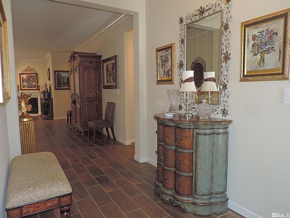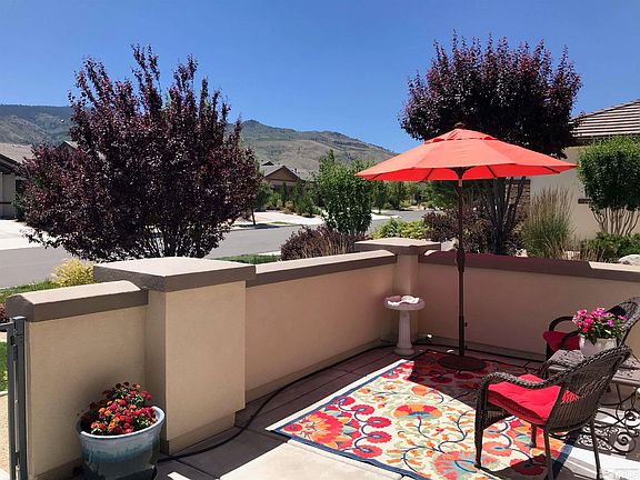 Pending-contingent on buyers selling their home. 2084 sq ft 2 bed+ DEN, 22' garage, courtyard with lovely Sierra Mountain VIEWS, cozy paver backyard. Cul-de-sac Stunning home: wood look tile floors, carpeted bedrooms, Crown Molding, Granite Counters, upper & lower cabinet lighting, fireplace, H2O filter at sink & refer, Primary Bath: 2 sinks, a garden tub, shower & walk-in closet. Enjoy views & your morning coffee from the breakfast nook or courtyard. Del Webb 55+ adult community of Sierra Canyon-Somersett, A rare floor plan: This immaculate Sherwood with 2084 sq ft. has many upgraded including Ceiling fans with light kits, A Radiant barrier roof sheathing (upgraded) for insulation. Bay window is in the primary bedroom. Laundry room with soft-close cabinets & a large sink. Does your dog need a bath? TEC includes: Fiber internet available, Subscription-free local TV antenna wired to 4 outlets, Wi-Fi Smart Color Thermostat, LED lighting throughout, motion-sensor lights in laundry room, garage, and primary closet, & Upgraded Chandeliers of dimmers. This floor plan sports extra closet & cabinet for storage. Rain gutters are installed. Security front door with glass & screen. Enclosed courtyard with gate. Pride of ownership shows. A must SEE. The Sierra Canyon club house with many groups & activities including pickle ball, tennis, billiards, card games, gym workout, line dancing, swim all year round in the indoor lap pool, indoor walking track for exercise and a library for your enjoyment. Somersett is located in the foothills of the Sierra Mountains. It is about an hour to Lake Tahoe & several other lakes including Donner Lake in Truckee which are great for water sports. Fish at the lakes or the Truckee River 5 miles away. Winter time sports: several ski areas are close by within 60 miles. Downtown Reno, the small International airport, & medical hospital including a VA hospital 20 to 30 minutes. So many activities in town each weekend in Reno come join in the adventures.