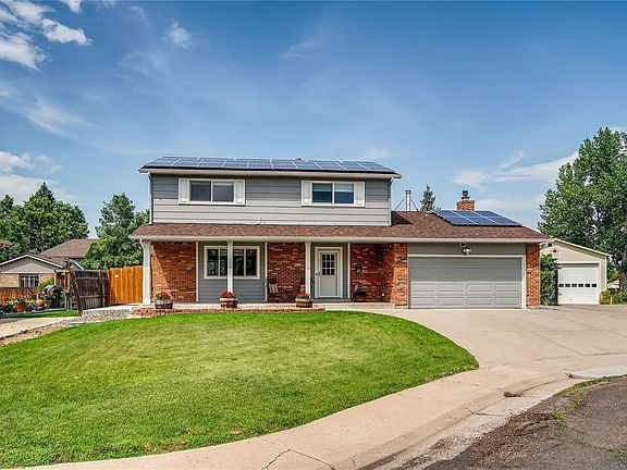 Beautiful Two Story Richmond Model in the heart of Kipling Villas. Fully owned Solar averages a $135 monthly check from Xcel after running your AC. Fantastic Kitchen with cherry cabinets, stainless appliances and slab granite counters. Family room features a chic slate stone surround gas fireplace with blower for those cold nights. Four generous bedrooms up and two additional conforming bedrooms in basement. Large covered front porch. RV Parking (11x30) and large storage shed. Newer roof with impact resistant shingles, insulated attic and garage, updated master bath, new large rear patio, new garage floor, new central AC, new water heater, newer main electrical panel, insulated garage door and more. Located on a quiet cul-de-sac near Colorow Elementary school and Lilley Gulch Rec Center. Come view and make this your home.
