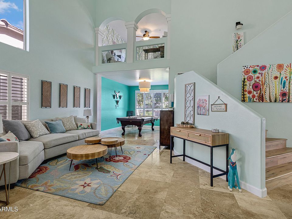 Beautifully REMODELED 5 bedroom, 2.5 bath home in a quiet North Scottdale community minutes away from TPC, Westworld, and the Kierland/Scottsdale Quarter. Grand entrance with soaring ceilings. Stone flooring throughout the first level. The kitchen was remodeled in 2020! Master bedroom with large adjacent sitting area or office. PLUS, a gorgeous Master Bath which was completely updated in 2021. Sizeable walk-in closet with custom built-ins. Plantation shutters throughout. Engineered wood floors in bedrooms. One bedroom downstairs.. Brand new roof in 2024 with warranty, new windows, water heater & softener—too many items to list (see attached upgrade list). Both ACs are newer. North facing backyard has a newer fenced-in pool, a large heated in-ground spa with a newer heater, and over $20K on NEW landscaping! Large side yard with slab, storage & RV Gate. Award-winning Scottsdale school district. A sprawling grass park just one block over, plus near shopping and many top restaurants. This home is COMPLETELY UPDATED and would make a great family home, a 2nd-home or an Airbnb. Call to book a tour before it sells!