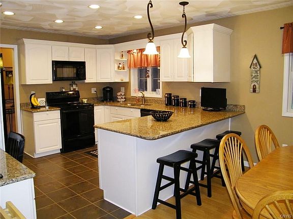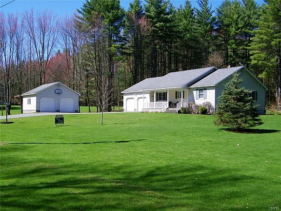 Why Build New! When you can have this well established custom built immaculate ranch home just on the outskirts of Camden! Move in & do nothing w/ tasteful paint colors throughout! Modern floor plan with master suite & bath on one end, 2 additional bedrooms & bath on the other end for ultimate privacy. You will love the upgrades in the kitchen w/ granite countertops, under mount sink & appliances. Large living room w/ cozy propane fireplace has views of the back yard, pressure treated deck & covered area for a hot tub that's fully wired. Partially finished basement has a knotty pine family room with an awesome wet bar, exercise room, storage room & utility room with pellet furnace, oil furnace & central air. Attached 2 car finished/insulated garage & det. 2 car garage for more storage.