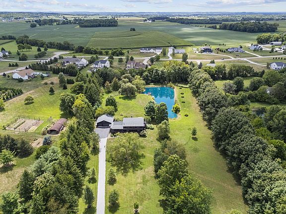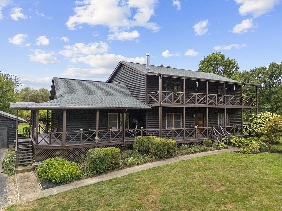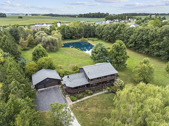Welcome to this inviting three-bedroom, two-and-a-half-bath home, lovingly cared for by its original owner. Located on a little over five acres with a pond and mature trees, it's the perfect place to unwind and enjoy nature in every season. Relax on the wraparound porch with your morning coffee or watch the sunset over the water in the evening. Inside, you'll find a thoughtful layout featuring a den on the first floor, the convenience of first-floor laundry, and plenty of space for family and friends. The three-car garage provides ample room for parking, storage, or hobbies. This special property offers the perfect blend of comfort, charm, and privacy—ready to welcome you home.