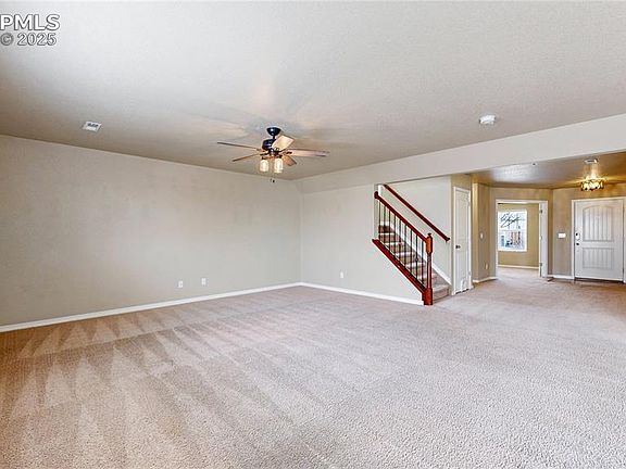 INDULGE in PIKES PEAK VIEWs from your backyard deck. Sun sets over the front range and Pike’s Peak are amazing from most vantages in this home and especially from the lifted low maintenance deck just through your dining room patio doors. A large open floor plan from kitchen to dining to living room feels bright and inviting to highlight time in your home. The lower level is completed by a large office and a 2-car attached garage. Upper level living is approached via lofted stairwell with bay window. Present layout includes a large primary bedroom with 5 piece en-suite bath in addition to another full bathroom, laundry room, two bedrooms with large walk in closets, and an enormous loft that could be completed to a 4th bedroom quite simply. Your backyard is landscaped, on irrigation system, and completely fenced in for pets and play. Cuchares Ranch includes walking trails and parks and is located at the edge of town for convenience yet privacy. Enjoy quick access to the Bluestem Prairie Open Space, Downtown Colorado Springs, Fountain, Parks, Shopping, and More.