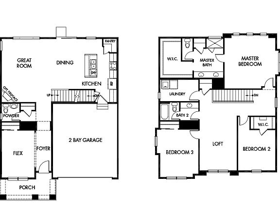 Espresso cabinets, bengal white kitchen countertops, cement carpet, beige colored laminate, and weathered hardwood flooring in The District E package.