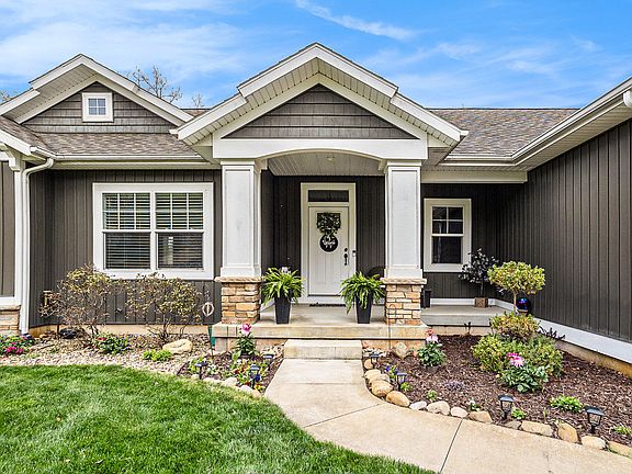 Welcome home to 9266 Trafalgar Drive SE in the beautiful community of Blackstone. Located in the sought-after Caledonia School District and just 20 minutes from Grand Rapids you will find this stunning walk-out ranch in a quiet cul-de-sac community. Built for family and entertaining, the 2,925 sq ft Buffum-built custom home masterfully blends timeless comfort with exceptional craftsmanship. Inside, you'll find 4 bedrooms and 3.5 baths anchored by a soaring vaulted main level that flows effortlessly through an open-concept living space. Experience the comfort of a gas fireplace, gourmet kitchen, and main floor laundry. The serene primary suite includes a private en-suite bath. The finished walkout basement provides extra living space, wet bar and storage. A large 12' x 24' deck sits above an approximate 11' x 30' patio with peaceful views. Set on nearly an acre near Campau Lake, Thornapple River & just minutes from the airport, Cascade, Lowell and downtown Grand Rapids, this home offers natural beauty and convenience. Enjoy coming home to rolling hills, wooded ravines, wide lots, and no HOA fees in this peaceful, tucked-away neighborhood.