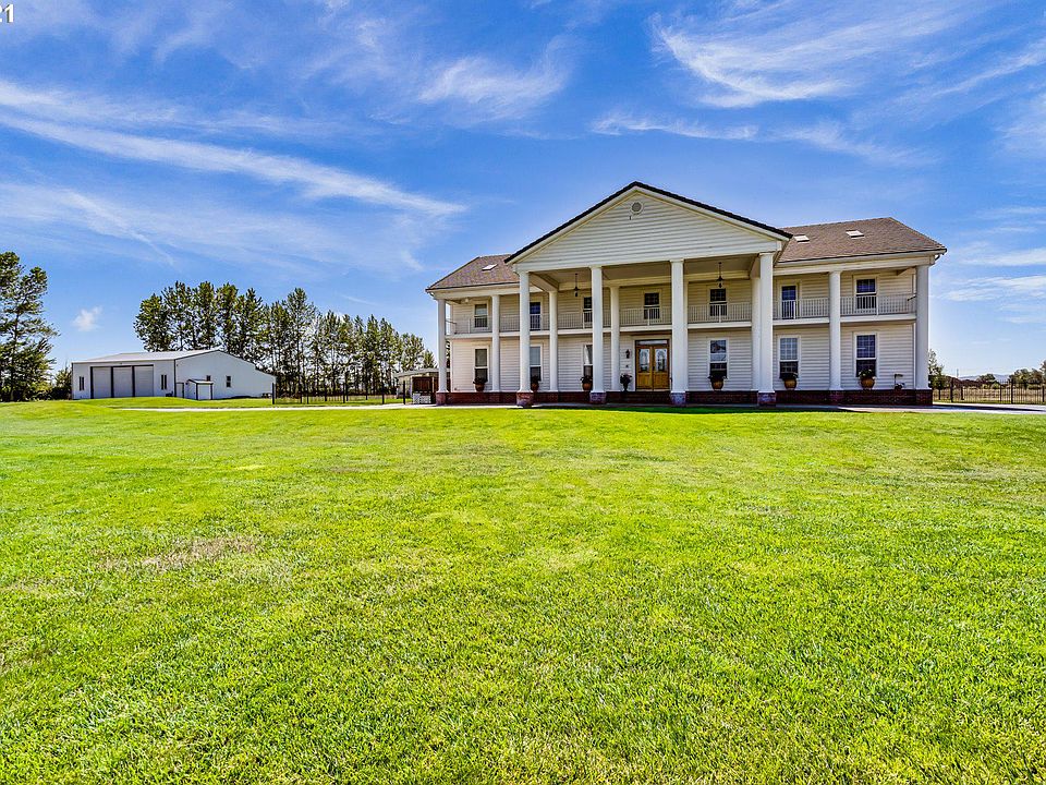 Custom colonial style estate, 6,070+ square feet, heated flooring, 16+ acres, finished 60x40 shop w/ equip. storage addition, manicured property + farm land, 3 wells w/ irrigation. 4 beds, 4 baths - 1 in pool house, formal living, great room, huge family/entertainment room w/ 6 seat bar. Large master suite. 12 seat theater. Gourmet kitchen with high end appliances. Smart/app controlled appliances, lighting, pool, irrigation controls. Brazilian Cherry/Travertine flooring. Pool and hot tub.