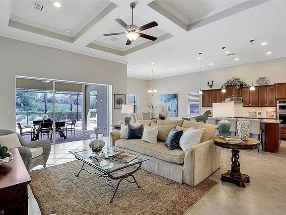 VACATION LIFESTYLE IN THE QUARRY! This popular "Dartmouth II" features 3 Bedrooms, Den, 3 Full Baths and is situated on a private and heavily landscaped lot with golf course views! Thru the front door, you will be greeted with a wide open Great Room style floorplan with 12' ceilings, coffered ceiling, spacious Kitchen with island, Kitchen Aid Appliances including wall oven, and large eat-in kitchen area. Disappearing sliding glass doors lead you to the lanai complete heated pool and ample deck space entertaining. Other fine appointments include Electric Roll Down Shutters on the lanai, crown molding throughout, closet built ins, plantation shutters, extended garage (28'x28'), epoxy garage floor, diagonal tile, wood floors in the den, and more! The Quarry - A Lakefront community offering Boating, Golf, Tennis, Pickle ball, Bocce Ball, Tiki Bar, Restaurant, Pool-Side Food/Drink Service, Gym, Social Activities and more! The Quarry offers over 500 acres of lakes that can handle boats & jet skis (Docks available for lease). Private Golf Club (Not Mandatory/Memberships available) with 18 hole PGA Level Hurdzan Frye course.