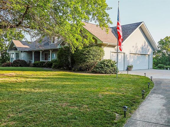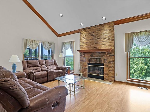 NEW PRICE! Check out this rare find in the heart of wine country! Sprawling atrium ranch boasts 4 beds and 2.5 baths and features over 3,000 SF of living space! The formal entry makes way to the formal dining area that leads to the spacious eat-in kitchen, soaring vaulted ceilings, center island with breakfast bar, and great room featuring a masonry gas fireplace. The main floor master suite features a walk-in closet & master bath with separate shower and soaking tub. You'll never want or have to go back to the office again after you take in the 2nd floor office fit for any executive! The finished lower level boasts a family room with wet bar, dining area, 3 bedrooms, and 1 full bathroom. Don't forget about the sunk-in hot tub ready to enjoy all year round! Sip morning coffee on the screened in deck overlooking your lush landscaping and breathtaking views all around! 3-car garage, gazebo, tranquil water feature, and more on 1 acre. Located about an hour west of STL! Motivated Seller!