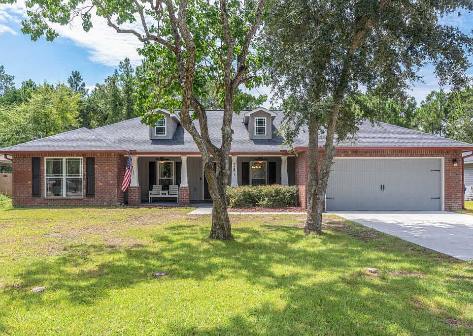 Come fall in love with everything this beautiful Navarre home has to offer. Located just 8 minutes from Navarre beach, and only 15 minutes from Hurlburt Field. This home features an open concept between the kitchen and living room, with high cathedral ceilings. The kitchen connects to your formal dining room, while the living room connects to a versatile den/office space. The separate laundry room leads to your 2 car garage. Highly popular split floor plan with master bedroom and bath on the west side, with the additional 3 bedrooms and 1 bath on the east side. The master bathroom has a separate shower and soaking tub, dual vanity, and 2 walk in closets. Kitchen features granite counter tops, stainless steel appliances, white subway tile back splash, and pantry...