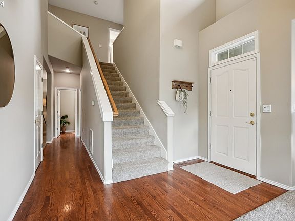 Welcome to your serene sanctuary! Nestled in a quiet cul-de-sac, this stunning 4-bedroom, 2.5-bathroom home offers the perfect blend of tranquility and convenience. Step inside to discover soaring vaulted ceilings that create an airy and spacious atmosphere, complemented by elegant hardwood floors that exude warmth and charm throughout. Embrace the beauty of nature from your own backyard oasis! The fenced yard, complete with a spacious deck, provides the ideal setting for outdoor gatherings and relaxation, while overlooking a protected greenspace ensures privacy and serenity. Enjoy the convenience of living just moments away from Metzger Park, where endless recreational opportunities await. Whether you're craving a leisurely stroll through nature trails or a fun-filled day at the playground, this park has something for everyone. Plus, with convenient access to nearby amenities, shopping, and dining options, you'll have everything you need right at your fingertips.