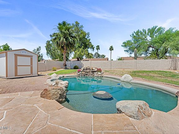 No HOA!!! This home is a beautiful single-family residence with many updates, new appliances, newer roof, a/c, water heater and many more upgrades. The exterior of the home features a modern southwestern design with stucco walls, a newer roof (2019) and desert landscaping. The property is surrounded by mature trees and cacti, providing a sense of privacy and tranquility. Upon entering the home, you are greeted by a spacious floor plan with high ceilings and large new windows that allow for plenty of natural light. The living room is cozy and inviting, with a fireplace and mantle. The kitchen is equipped with new appliances, a pass-through window and a large island for food preparation and casual dining. The home has three bedrooms, including a master sui with a large closet and en-suite bathroom with a walk-in shower. The backyard is a peaceful oasis with a covered patio, a sparkling pool, and a lush lawn, perfect for outdoor entertaining and relaxing. The home offers a perfect blend of comfort, style, and luxury in a desirable location. Did I say NO HOA?