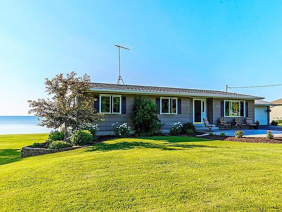 Magnificent panoramic bay views compliment the beautiful open landscaping of this striking home. Bring your shades and put them on, the sunsets are blindingly breathtaking. Home has new paint inside & out. Patios are stamped concrete and brick. Fully finished lower level provides expansive living area with more bay views! This home has new wood floors throughout main level. Lot is dividable. Second detached 2-car garage. Hurry and check this one out!
