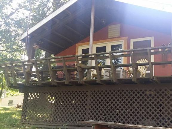 EXCELLENT WATERFRONT LOT! Use as a summer cabin or a great lot for tear down and start new! Det Garage. Cabin has 2 bdrms and 2 baths, kitchen and living area in Great room area! Wood Stove! Large Porch deck overlooking water! Boat dock! Sand beach area!!! At this price it wont last long!