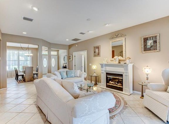With Golf Course views this pristine home in Spruce Creek Country Club is a 10! Foyer opens to formal open plan Dining and Living Rooms with built in bookcases, cozy fireplace and sliding doors to covered patio. Generous sized kitchen with center island, tons of cabinet and counter space. Light filled family room leading to library. Find your oasis of calm in the private Master Suite with very own access to patio, large walk in closet, double vanity, large soaking tub, and separate shower. Additionally there are two bedrooms, with jack and jill bathroom and a powder room. New roof. Soak in the heated spa outside, relax poolside, or take out the golf cart from your very own storage area in garage and play the back 9. Life in Spruce Creek awaits!