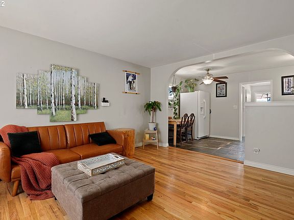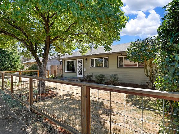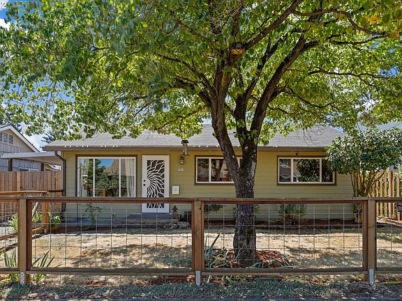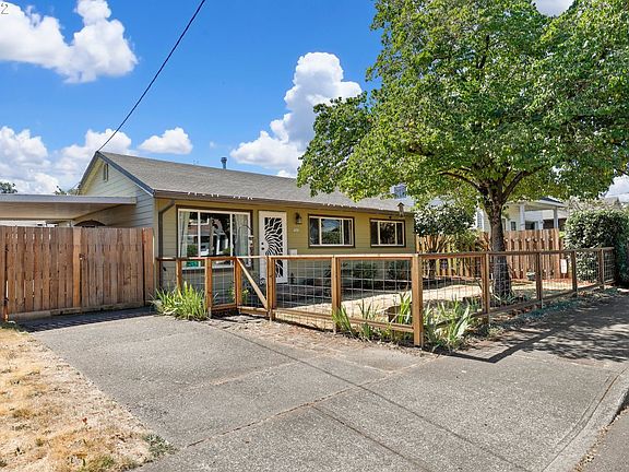 Check out the spacious, open floorplan in this darling one-level home! A sweet eat-in kitchen with bar seating. Both family room and a living rooms for versatile living. Primary bedroom w/TWO closets. Hardwood floors. Utility room includes washer/dryer. Covered back patio, fenced backyard with stamped concrete back porch, carport, and off-street parking. So much to love here! [Home Energy Score = 5. HES Report at https://rpt.greenbuildingregistry.com/hes/OR10204871]