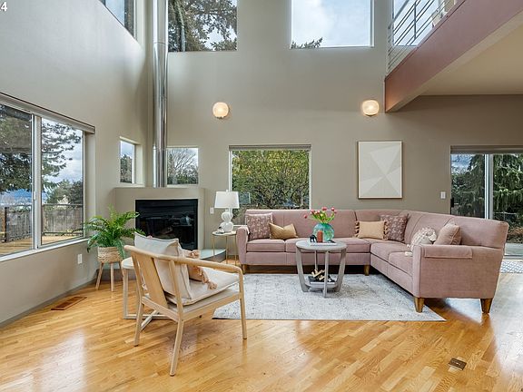 Enjoy Backyard Bliss in this Sunlit Contemporary Charmer! Set your own pace with this contemporary Portland home on a serene private street in a community lush with natural beauty. Surrounded by miles of hiking and biking trails, the area boasts easy access to I-5 for shopping, dining, and adventure. In addition to its proximity to Tryon Creek State Park, Lewis & Clark College, and OHSU, cyclists and adventurers can effortlessly explore from the River View Natural Area (featuring trails leading to the Willamette River, Oaks Park, South Waterfront) to downtown Portland. Chic tongue and groove, pickled pine ceilings usher you into the home, followed by the streaming natural light of a bright, open living room design. The high ceilings, abundant windows, and an upstairs interior balcony facilitate stunning second-story views. Automatic blinds, updated appliances, and air conditioning ensure year-round comfort and gorgeous sunlit interiors. Let your comfortable backyard be a welcome respite from the long week, with plenty of space for lounging on the deck, stretching your legs in the grass, gardening, or entertaining friends. Flex your culinary skills on the original Thermador gas cooktop and butcher block kitchen island with seating. An oversized garage with built-ins and a flexible main floor room further enhance the home's appeal, allowing for a guest room, music or media space, or home office. This property also offers ADA amenities for added versatility. Don't miss out on this bit of peace to come home to--schedule a tour today! [Home Energy Score = 5. HES Report at https://rpt.greenbuildingregistry.com/hes/OR10024154]