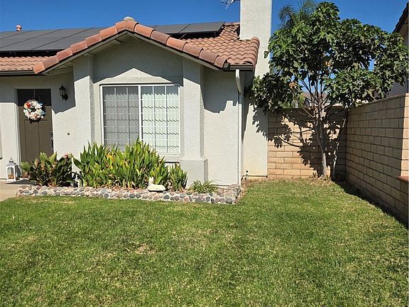 Amazing opportunity to own this well-maintained property in a quiet neighborhood. Featuring 4 bedrooms, 2 bathrooms. (assessor records 3 bed and 2 bath with 1188 sqft) but the house has 4 bedrooms and 2 bathrooms and estimated square footage of 1388. Nice front yard with some fruit trees front and back. As you walking to enter to living room and cozy fireplace with a big window to illuminate the interior. then you have the dining room with a sliding door to the back yard. One story home with concrete roof tiles and leased solar panels. then you will go to all four bedrooms and two bathrooms and inside laundry room for your convenience. Back yards feature a large patio part solid and part open to let sunlight through. This house is price to sell quickly so don't wait to show to your buyers and send us an offer. Property is sold as is and not repairs will be made. Sqft not taped. Buyer and buyers agent to do verify and satisfy themselves as condition and sq.ft.