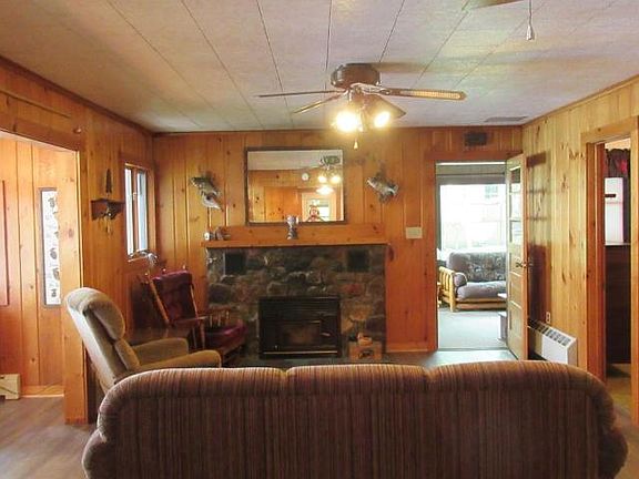 Great frontage on Pickerel Lake! This 2 bedroom 1 bath year round cottage is simply adorable. Great view of the lake,nicely landscaped level lot, sand frontage. Beautiful stone fireplace that is wood burning, a spacious three season room, enclosed porch, and an attic that is finished and furnished with beds for the kids! There is a garage and extra storage and a utility room. A new metal roof will be completed in mid-August.