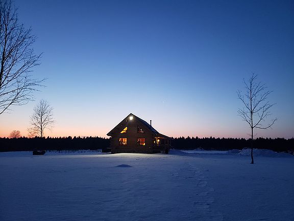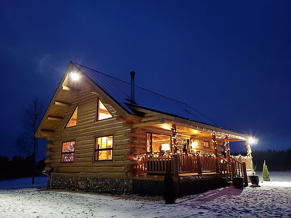 A Northern Michigan authentic built Amish-Log Cabin nestled in the heart of 54 acres that includes hardwoods and pine/spruce trees. Full red pine logs were used to build the cabin with one large great room with a wood burning stove that heats the whole cabin. There is also a large loft with a balcony looking west for sunsets. The cabin is 100% solar powered with a 9.6 KW solar array with an energy storage system for 1-2 days of complete off-grid power. The cabin is located 1 mile from Bear Lake and 6 miles from the beautiful shores of Lake Michigan. Traverse City is 45 minutes north.