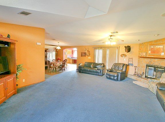 - Blinds, Laminate Counter, Split Floor Plan, Family Room, Open Floor Plan, Utility Living Area, Wood Cabinets, Eat-in Kitchen, Pantry, Window Treatment, Ceiling Fans, Walk-in Closet(s), Fireplace, Laundry/Utility Room