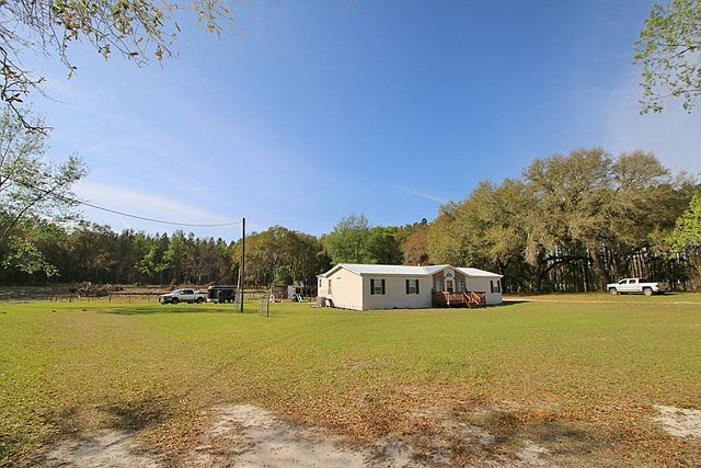 MINI FARM READY! Located on the southern edge of Trenton you'll find this magnificent triple wide home in great condition, ready for your family and animals. This quality built home is a Cameron by Skyline. It features an abundance of living space that includes a large foyer, super sized family room with a stone fireplace, and an enormous kitchen. The split-plan provides added privacy for the master suite, where you'll find a walk in closet, and large glamour bath with separate shower and tub. The open-spaced floor plan provides for an awesome family home! The home is situated on a rectangular 5 acres with paved road frontage, large oaks on the western edge providing afternoon shade. Call today for your tour!