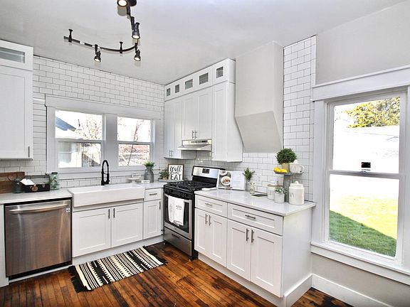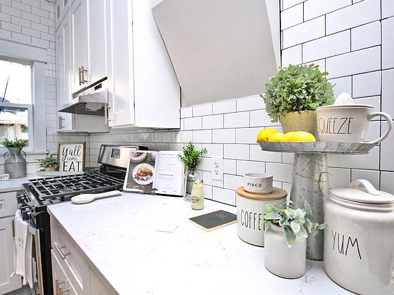 With a unique twist of modernism and original charm, your new home will be the talk of the neighbors and the envy of all your friends. Hardwoods, that have been carefully restored, run the entirety of the home. Spend the afternoon reading in the sun in your cozy living room. A main floor bedroom/office space/hobby room can be utilized as such to accommodate any of your needs. Enjoy the convenience of your first floor half bath off your beautiful kitchen complete with new appliances and a farm sink. Walk up your tiled staircase and find 2 more bedrooms, and your full bath that King Midas himself would approve of. The elegant gold fixtures are truly something to see! Another perfect West Side home! Thoughtfully rehabbed by Rising Tide Homes and staged beautifully by Love Actually Designs.