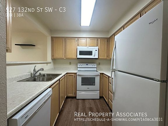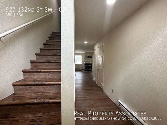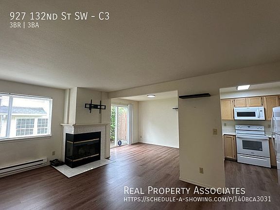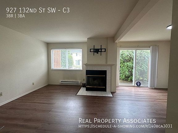This newly update townhome is just a few minutes walk to the Park-n-Ride, 10 minutes to Boeing with easy access to I-5 and I-405. This home is nestled in a private community with its own parks, community pool and Fitness Center. The dead-end street also creates an extra quiet location. Home features an open layout on the main floor with wide-plank flooring thru out. The slider from the dining room opens on to a private patio and then just a few steps to the pool. The wood burning fireplace in the Living room creates a welcoming feeling. The half bath completes the main floor. The wide-plank flooring continues up the stairs & throughout the 2nd floor. The 2 large bedrooms share an updated main bathroom & the large master suite has a barn door that opens to a newly updated master bath. Across for the master bathroom, is a large master closet complete with built-ins. Owner is looking for a one year lease with an option to extend. Move in Special if lease signed by 9/15 Application - $45 per person over 18 Pinata - $30 per month Renters Insurance - required Property Managed by Real Property Associates Contact Heidi with questions