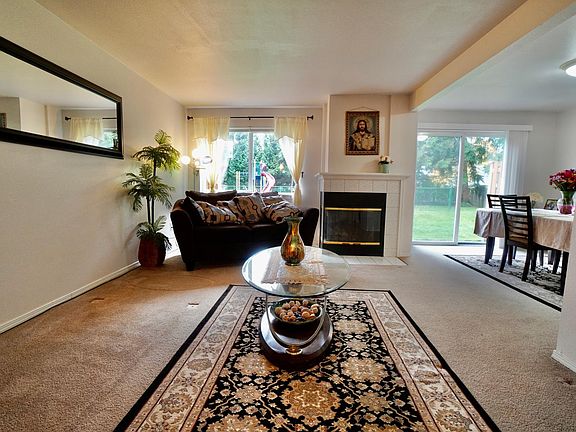 A 3 bedroom 2.5 bath South Facing and Sun filled Townhome that overlooks communal play area. Kitchen has all the appliances including built in Microwave/vent combo and refrigerator. Master bedroom as adjoining oversized bathroom. A fireplace is the centerpiece for the inviting living room & a dining room. All this resides in a manicured complex with lots of open space, playgrounds, pool and lots more. Easy & quick I-5 Access & close to buses! Water and sewer are included in the rent. Renter responsible for all other utilities. No pets allowed, and No smoking.