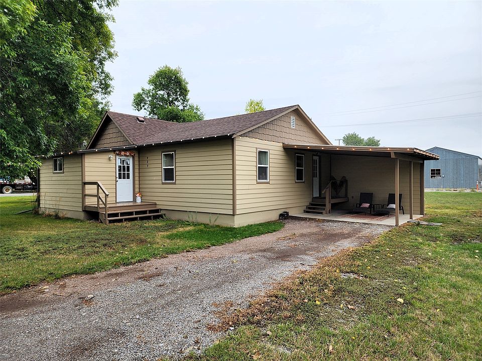 Nestled in Choteau, Montana, along the scenic Rocky Mountain Front, this charming 3-bedroom, 2-bath home sits on a spacious corner lot and is immaculately maintained. The newly added primary bedroom opens to a lovely back deck, complete with an oversized en-suite bathroom. Updated throughout, the home boasts new flooring, a modern kitchen with new laminate countertops, tile backsplash, and updated appliances. The enclosed front porch extends the living area, and outside you'll find a garden/storage shed for added convenience. With easy access to outdoor adventures like hiking, fishing, and skiing, this home offers both comfort and adventure. Contact Kami Bouma at 406-590-3440 or your real estate professional.