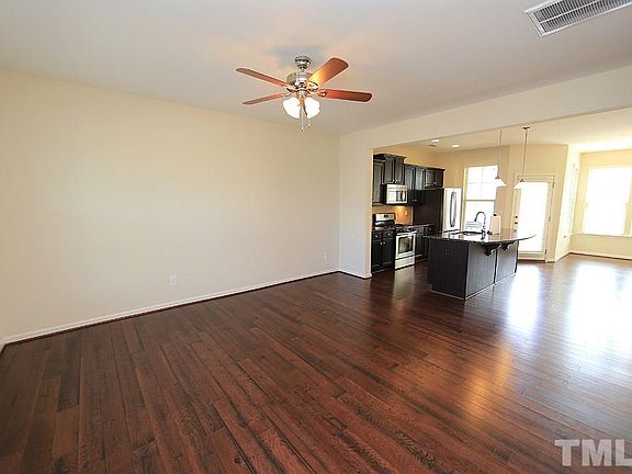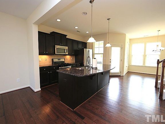 Well-maintained, spacious TH, 3BR-3.5 baths, open floor plan. 1856 sf, finished 3rd flr w/ full bath. All BRs have bath, WIC, master bath tiled shower. Kitchen: tile back splash, granite counters, ss app, large island, gas range, walk-in pantry. Partially covered patio. Engineered hw on main. Tankless water heater, 3-zone HVAC. Reserved parking. Peaceful, quiet, walkable neighborhood with clubhouse, nice pool, ponds, playground. Covenient to downtown Apex, parks, shopping, library, easy access to Hwy 64.