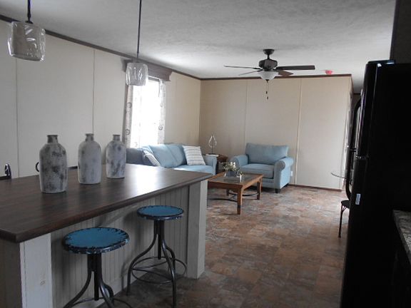 This home has 3 bedrooms 2 baths and 1,056 sqft. It has an open living room and kitchen. Kitchen is L shaped with lots of custom cabinets and counter space. There is also a huge island that seats 4-6 and all appliances included (fridge, stove/oven, dishwasher, and microwave). Master bedroom is large in size and has its own master bath with one piece tub/shower combo. At the other end of the home is two more nice sized bedrooms and another full bath. This home is a must see! And can be yours for $2222 down and estimated payments of $669 a month. Please call Misty or Melissa today at 877-246-5549 for more information or to schedule a viewing. *Financing offered through First Choice MH LLC (“First Choice”), NMLS #1241272. First Choice is a Licensed Mortgage Originator in the State of Indiana. Corporate Office: 600 W. 22nd Street, Suite 101, Oak Brook, IL 60523. Monthly payment based on purchase price $39,100, 1,500 down payment, 8.5% APR, 20Year Term. Payment includes estimate for taxes, title and insurance. All offers subject to credit approval by First Choice and approval through Four Leaf Properties for residency. Pricing is valid for 30 days from the date of this offer. Offer subject to site rent discount of $0 in 1 and 2. Thereafter site rent reverts to current market.