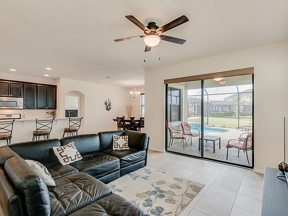 **MOVE-IN READY Strom Park POOL Home**Lightly lived in and Move-In Ready! Fanstastic covered front porch-Plenty room to sit and enjoy the outdoors. Tile floors in all the main living area. Dark cabinets, stainless appliances and granite counter-tops. Breakfast bar overlooking family room and dining area. Master suite with double sink vanity and large walkin shower. Formal dining room can be coverted to Office or 4th bedroom. Waterviews from screened pool area. Walk to A-rated Quest Elementary School. Do you have pets? - The dog park is a short walk away. Enjoy the community Splash Park! Residents can elect to enjoy all the ammenities coming to Addison Village, which include multiple pools, tennis courts and recreation areas. WHY WAIT TO BUILD?