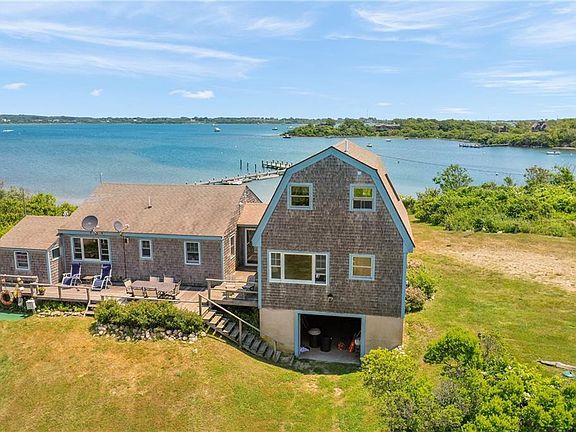 ONCE IN A LIFETIME opportunity to own waterfront property in Cormorant Cove with a much coveted priceless deeded dock. Water views from all sides of Cormorant Cove, Great Salt Pond and Block Island Sound. Classic ranch, joined to a converted barn through a breezeway, provides multiple living spaces with an abundance of natural light and vistas. Just steps off the deck is a highly sought after private path to a sandy beach and a 400 square foot dock. The ULTIMATE location with expansive water views and spectacular sunsets. The house is serviced by a private septic and shared well. Underneath the barn is a garage housing the washer, dryer, electrical panel and hot air furnace.