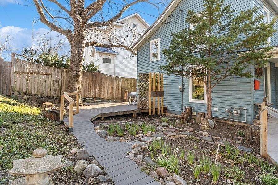 Nestled in the Northside neighborhood locals affectionally call "Deweyville" finds this much loved honey of a home snuggled within a gardener's paradise. For over 40 years, the sellers have cared for & lovingly improved this wonderful peaceful escape. From the metal roof to paths in the gardens to the custom walkway to the home, the outside spaces are equally as welcoming & warm as the inside...beautiful hardwood flooring, large windows yielding copious natural light, custom bathroom upgrades, main floor laundry...the list of amenities is long. Galley like kitchen w/ small eating area is perfectly situated w/ garden views. Fantastic open main floor loaded w/windows highlights the gorgeous lot, a true bird sanctuary. Up the hardwood stairwell finds 2 BRs + a perfect office/yoga space and a sizeable full bathroom w/bonus dressing area. Walk out lower level provided decades of ample storage for art & goods, as well as a 1/2 bath within unfinished space. Bonus add'l space serves as fantastic artist studio or workshop & overlooks wonderful yard. Detached one car garage with storage. This sweet home is ready for its next loving stewards!
