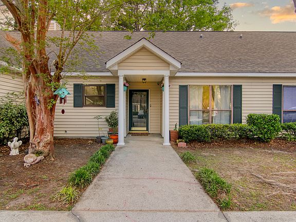 This Freshly painted, One level, 2 bedroom, 2 full bath home sits at the end of a quiet, wooded cul-de-sac and has a private, partially fenced back patio! To the left of the entry you'll be stunned by the vaulted ceilings, abundance of natural light, beautiful flooring & gas log fireplace in the family room. There is plenty of space for a dining area just before the kitchen which consists of new, stainless steel appliances, new refrigerator and large pantry. To the right of the entry you'll find 2 spacious bedrooms that are separated by an upgraded guest/ hall bathroom. The primary suite is on the backside of the home with an updated en-suite and generously sized closet. Storage? Don't worry, there is an ample amount in the upstairs attic space!! Only 100 yards from the community pool,walking trails which leads to the marsh and tennis courts! ** Conveniently located: 8 minutes to Whole Foods, 5 Minutes to Costco, 15 minutes to Downtown Charleston, and 15 Minutes to Charleston International Airport.