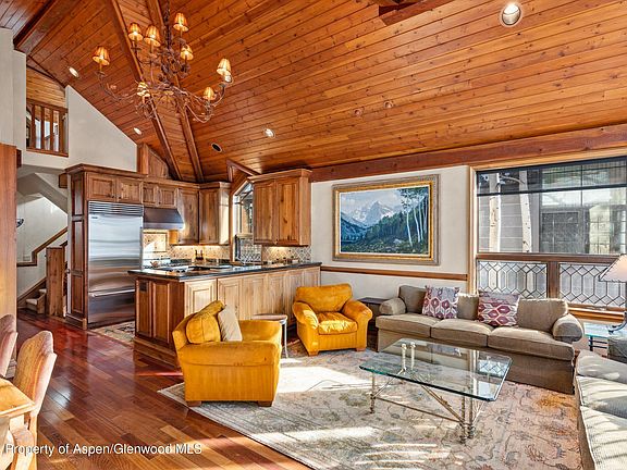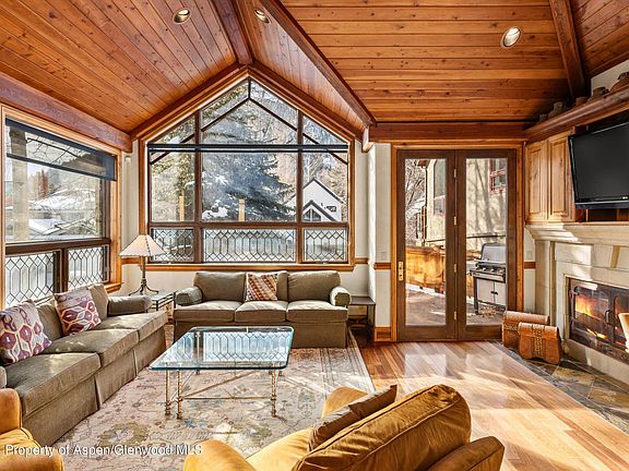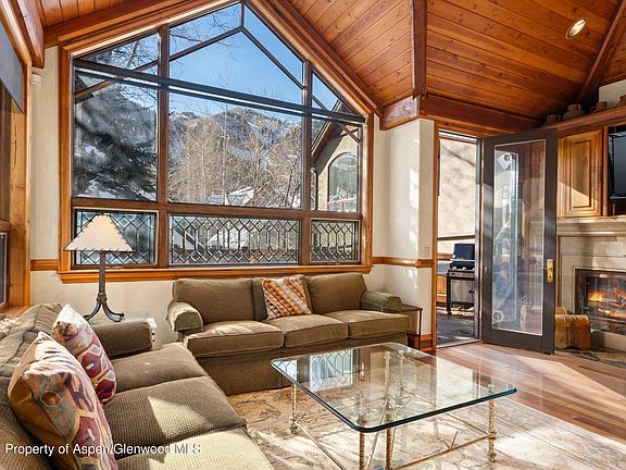 This four-bedroom + flex room, 5.5 bathroom townhome boasts a fantastic location at the quiet end of Hyman Avenue just two blocks to the gondola and heart of downtown Aspen. The breathtaking views of Aspen Mountain are abundant throughout the dining room, living room, and kitchen, with a private deck for outdoor entertaining. The top floor features vaulted ceilings, gas fireplace, and open concept living spaces. The expansive master suite enjoys a gas fireplace, walk-in closet and ensuite master bath with shower, soaking tub, and dual vanity. Additional amenities include 2 car garage, laundry room, storage, additional lower level patio and A+ location. Office is a designated ADU.