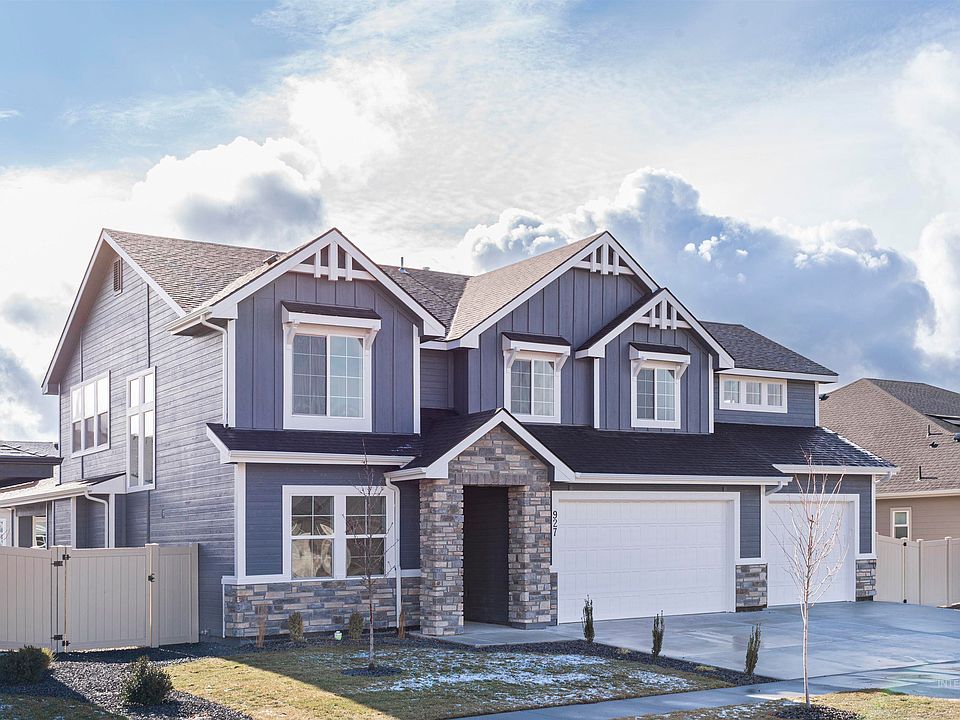 The Tuscany offers an unbelievable amount of home for your money. With 5 Bedrooms, including downstairs guest suite, 3.5 bathrooms, large bonus room, and office it is one of the best values in the new home market. The Tuscany is perfect for larger or multi-generational families or people who love to have visitors. The downstairs den has a secret closet built into the trimwork and can be used as an office, or even converted to a 6th bedroom! The luxurious master suite has a deep soaker tub, tiled shower, and massive closet that connects to the laundry room. Every Eaglewood home comes with premium Moen plumbing fixtures, custom cabinetry, and expertly chosen selections with high quality materials and finishes. This home is situated in one of the final phases of the luxurious Patagonia community which has 2 pools, parks, and walking paths. BTVAI. ALL PHOTOS ARE ACTUAL. Bring your real estate agent for access to tour the home via lock box. Construction is complete!