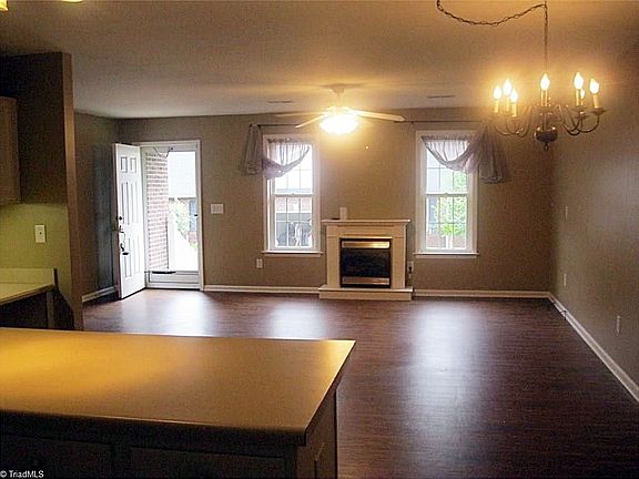 Great open floor plan in this end unit townhome. Kitchen, dining, living combo allows for ease in entertaining. Great storage and closet space with walk in closets and a nice pantry. There is an eat at bar in the kitchen, gas logs and a sitting room for relaxing. Concrete drive, single garage and extra parking are some of the extra features. Appliances remaining including refrigerator, range and dishwasher.