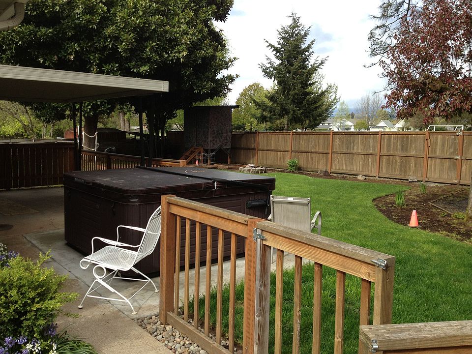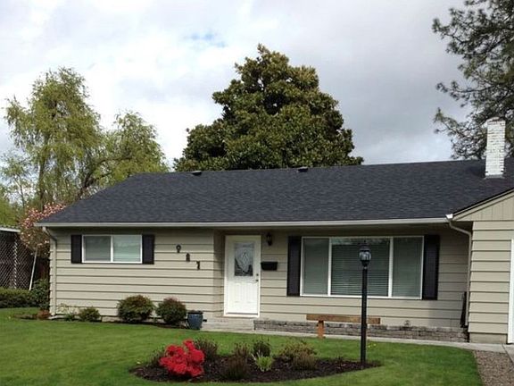 Lovely home on 1/4 acre lot, backs to Petersen Park. No back neighbors! Spacious living room with brick fireplace and large picture window. 5 possible bedrooms: 3 on main level with hardwood floors, 2 upstairs in attic area. Large granite tile kitchen with stainless appliances (refrig included!). Laundry room with sink. 2nd bathroom with shower. Covered patio and huge, private backyard steps from the park & playground. Non-thru street!