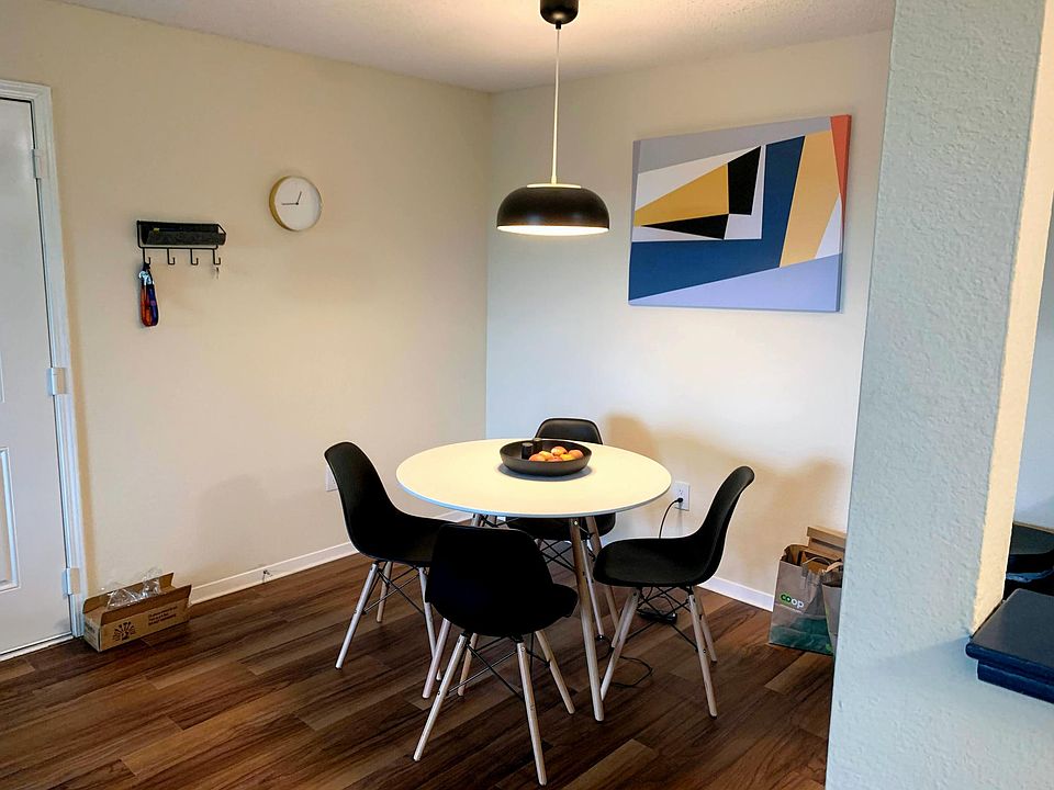 Just remodeled! New flooring, kitchen, living room, and bathrooms. Located right next to KU Bus stop. Ideal for student who wants to be able to walk to campus, working professionals, or for those who live in Lawrence part-time and want a low maintenance condo. Washer and dryer in unit. All appliances stay. Renter responsible for water and electricity. Free off-street parking. No pets without landlord approval.