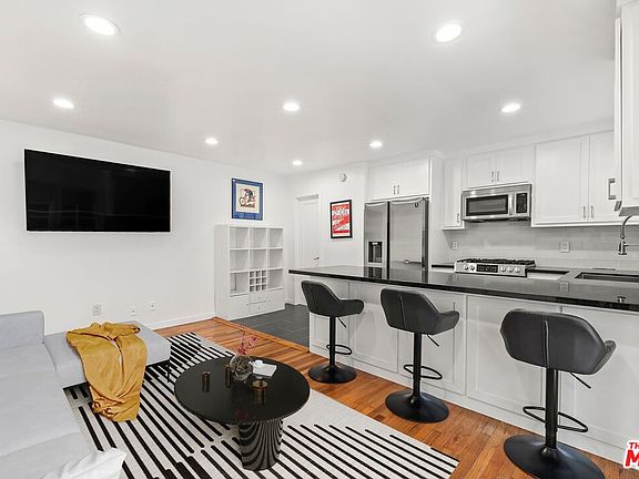 Welcome to this beautifully updated one-bedroom, one-bathroom unit in prime Santa Monica close to trendy boutiques, cafes, shopping, beaches, nightlife, and more! Discover gleaming wood floors that flow from the living room and into the spacious, light-filled bedroom. The bright kitchen includes a breakfast bar ledge and has been extensively renovated with stainless-steel appliances, stylish glass tile backsplash, and ample cabinetry. The bathroom is also freshly updated, and there is a spacious walk-in closet with built-ins and stackable in-unit laundry for convenience. The unit comes with a driveway parking spot, and street parking is also available. Available immediately. Some photos are virtually staged.