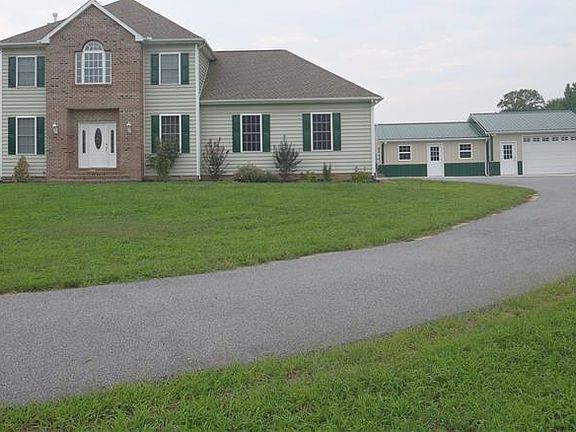 R-6710 This grand home is situated back off of main road and offers much privacy. Your driveway along this 5.89 acres leads to 4 bedroom home with attached oversized 2 car garage plus detached garage and outbuilding with pole shed ideal for hobbyist, shop or work-out room. Marble foyer greats you. Great room with fireplace, dining room, plus eat-in with breakfast area overlooking rear Trex deck and back yard. Great laundry/mud room with door to outside. Main bedroom with Tray ceiling on first floor with walk-in closet and bath with whirlpool tub. Three large bedrooms plus bonus room second floor. Plenty of additional storage in the eaves. Great country home.