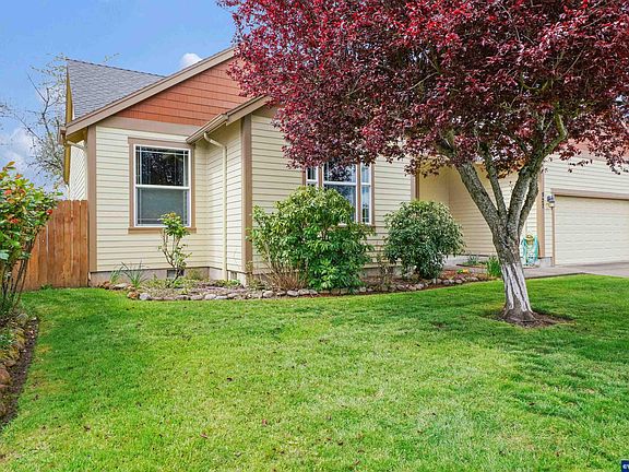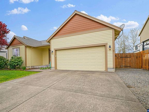 Well maintained single lvl located in the heart of Aumsville. Open concept living/kitchen area w/ gas FP. Spacious kitchen w/ plenty of storage, pantry, and access to the utility room. Two guest bedrooms w/ full bath in the hallway, leading to a large primary bedroom w/ large bathroom & walk-in closet. Outside feat. a covered patio, established landscaping, extra storage shed, & hot tub w/ a private feeling.