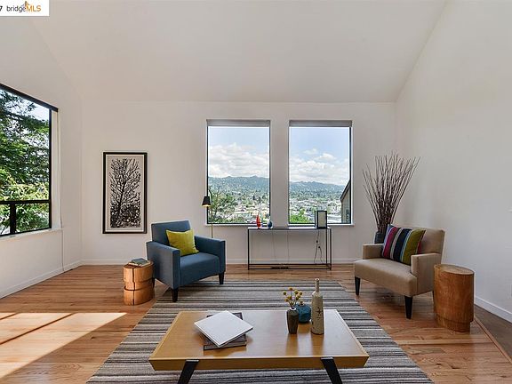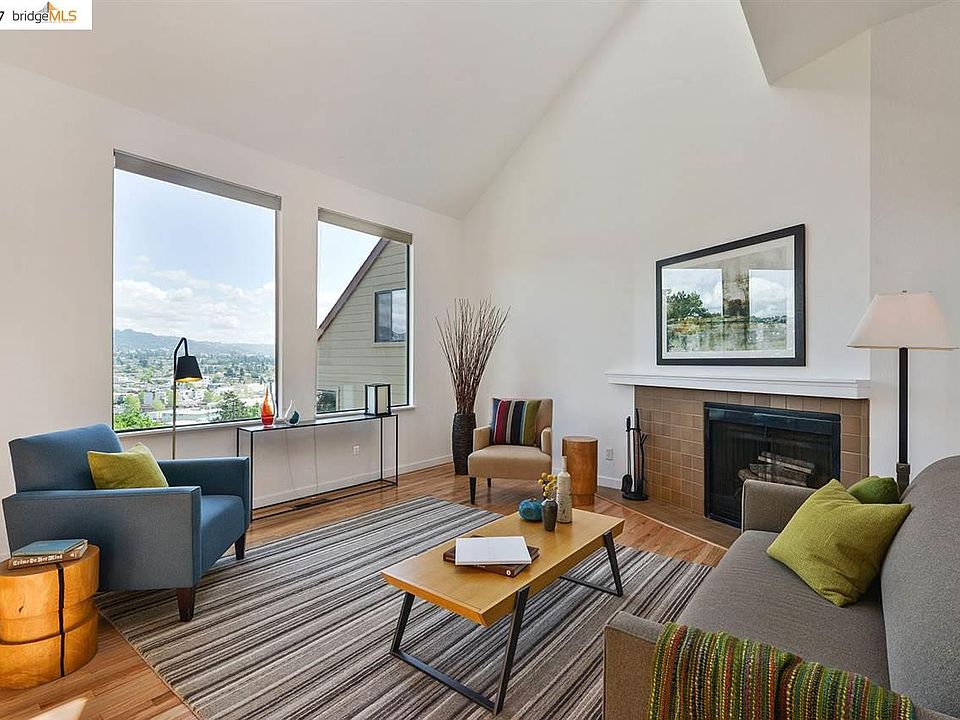 Dramatic loft like Albany townhouse with big views of the Berkeley and the El Cerrito hills. The sunny modern floor plan has soaring ceilings, new hardwood floors, an open dining room with sliding glass doors to a private patio and garden. Updated kitchen with granite counter tops and hardwood floors. There are two spacious master suites. The upper master suite has a separate loft area perfect for an office. Complete with washer and dryer in the unit. A two car garage. Top rated Albany schools. It is close to Solano Avenue restaurants, Ranch 99 Market. Easy commute to SF with express buses, 1.2 miles to El Cerrito BART.