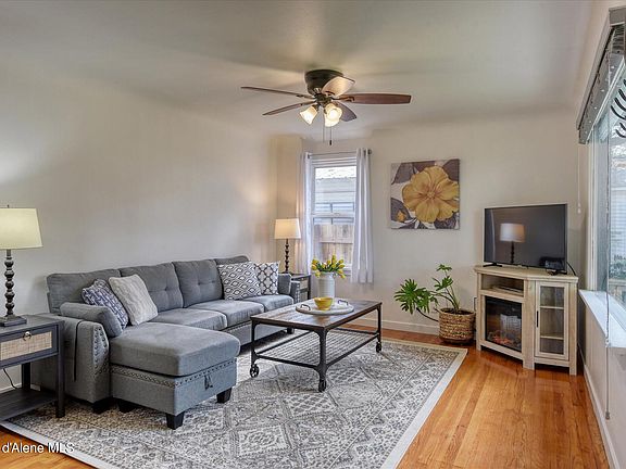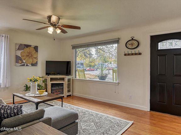 Excellent downtown location for this darling & rare 3 bedroom (1 non conforming) 1 bath turn-key fully furnished home. With a full kitchen and bath remodel done in late 2020, the home is move in ready or can function as a lucrative rental. New roof, front deck & sprinklers, interior & exterior paint, fencing, and attic insulation done in 2021-2023. Tucked away on a quiet shaded lot, this home also features an oversized 1 1/2 car detached garage (w/ wall heater)providing ample space for a shop, along with a carport & separate storage shed. Original hardwood flooring adds to the overall charm of this gem, & the utility cellar allows for the storage of valuables. No neighbors directly behind the home since Lakes Middle School grass field borders the fence line. 1 year home warranty included, along with stackable washer/dryer & all appliances. Owner/agent. Welcome to your affordable new home in desirable downtown CDA!